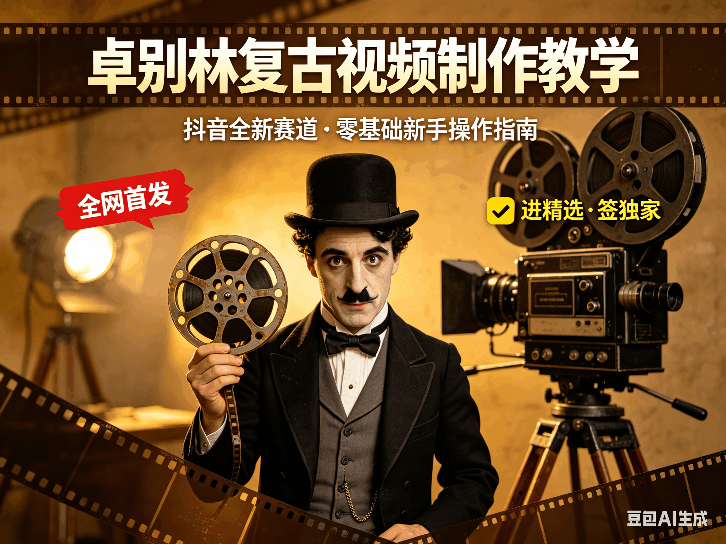 全网首发,卓别林复古视频制作教学,抖音全新赛道,可以进精选签独家,适合零基础新手操作